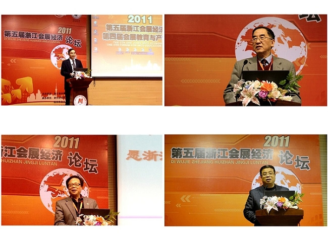 第五届浙江会展经济论坛有6个演讲主题。即中国、浙江、杭州、宁波、温州、义乌,6个区域的会展业2011年度发展报告。中国会展经济研究会常务副会长、教授级高级工程师陈泽炎首先作“中国会展业2011年度发展报告”。他以“新认识,新形势”为主题提出了对会展业的新看法,为与会者提供了一种新思路。陈会长还从大背景、大发展、大市场、大场馆4个方面分析了“新形势”,从大会战、大平台上体现了“新认识”。