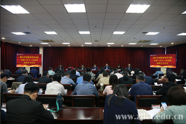 11月1日下午,学校召开党委(扩大)会议暨政治学习月会,学习传达浙江省基层党建工作会议精神。学校党委书记劳赐铭主持会议并讲话。学校党政领导班子、全体中层干部参加会议。