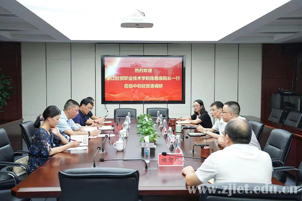 陈德泉高度评价了中非经贸港经营发展取得的成绩,特别是在服务中小微企业发展、展现国企担当、积极与时俱进等方面给人留下了深刻的印象。随后,详细介绍了我校的招生就业、发展现状和十四五规划等情况,希望与中非经贸港加强交流合作,把企业资源和学校优势对接起来,搭建校企合作服务平台,实现校企资源的有机结合和优化配置,实现互助双赢。