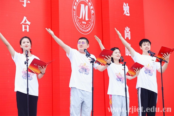 “来吧朋友,一起向未来!来吧青年,一起致远方!”现场,由我校服务杭州亚运会的志愿者师生代表带来的情景朗诵节目《青春当燃,我们在场》,激励同学们青春当“燃”,迎亚运、启新程、向未来!