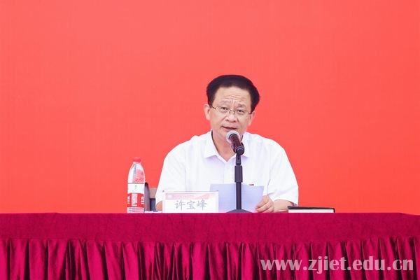 会后,党委副书记许宝峰对全体新生进行了安全教育,强调同学们要注意人、财、物的安全,提高安全防范意识,践行绿色校园理念,同心共迎亚运盛会,争当文明亚运的参与者、贡献者、捍卫者,弘扬亚运精神,展现经贸风采。