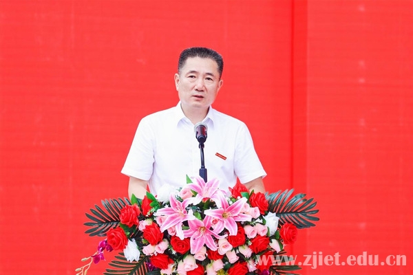 学校党委副书记、校长陈德泉向每一位加入经贸大家庭的新生表示热烈的欢迎和衷心的祝福,并以《以梦为马 勇毅笃行——让青春在砥砺技能报国之志中闪耀》为题给全体新生上了一堂“开学第一课”。他希望新“经贸人”坚定理想,心怀家国,以“信仰之光”点亮梦想之路;珍惜时光,勤学励能,以“笃学之光”点亮梦想之路;仰望星空,脚踏实地,以“奋斗之光”点亮梦想之路。他寄语2023级全体新生勇做走在时代前列的奋进者,勇当自立、自强、自信的时代弄潮儿,为实现中华民族伟大复兴的中国梦贡献智慧和力量,谱写最美好的人生华章。