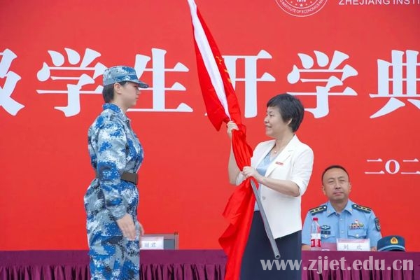 新生代表、信息技术学院金烨对学校热情周到暖心的迎新服务表示感谢,并将“团结互助、坚持不懈、追求卓越”作为经贸求学誓言与大家分享。